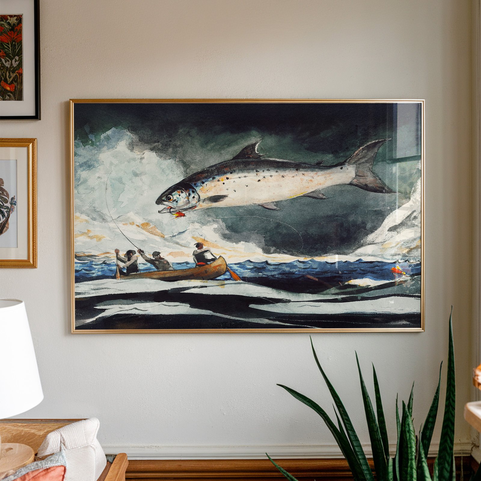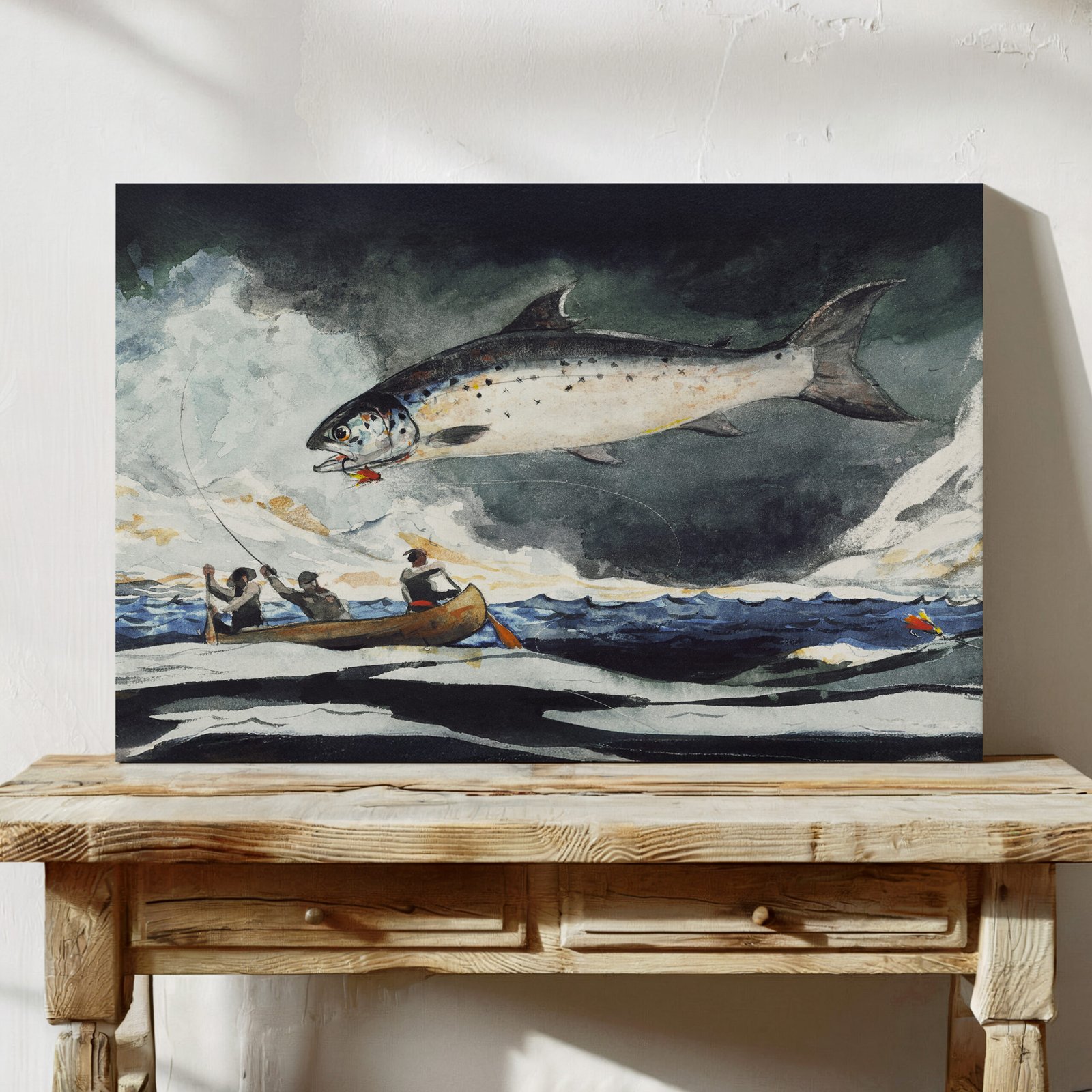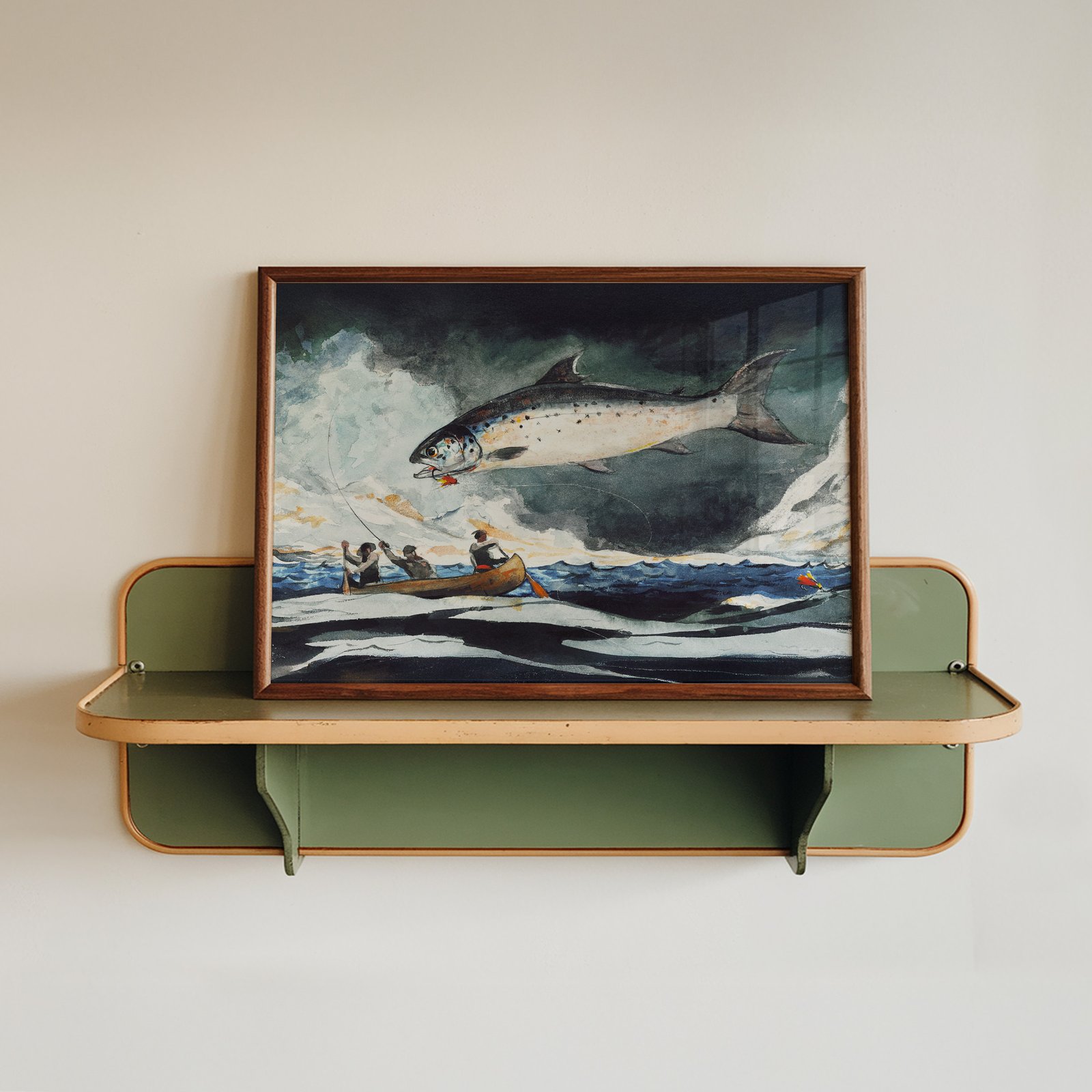 Perfect for fishing enthusiasts, nautical art lovers, or anyone drawn to vintage American art, this print adds dynamic energy to cabins, dens, offices, or lake houses.