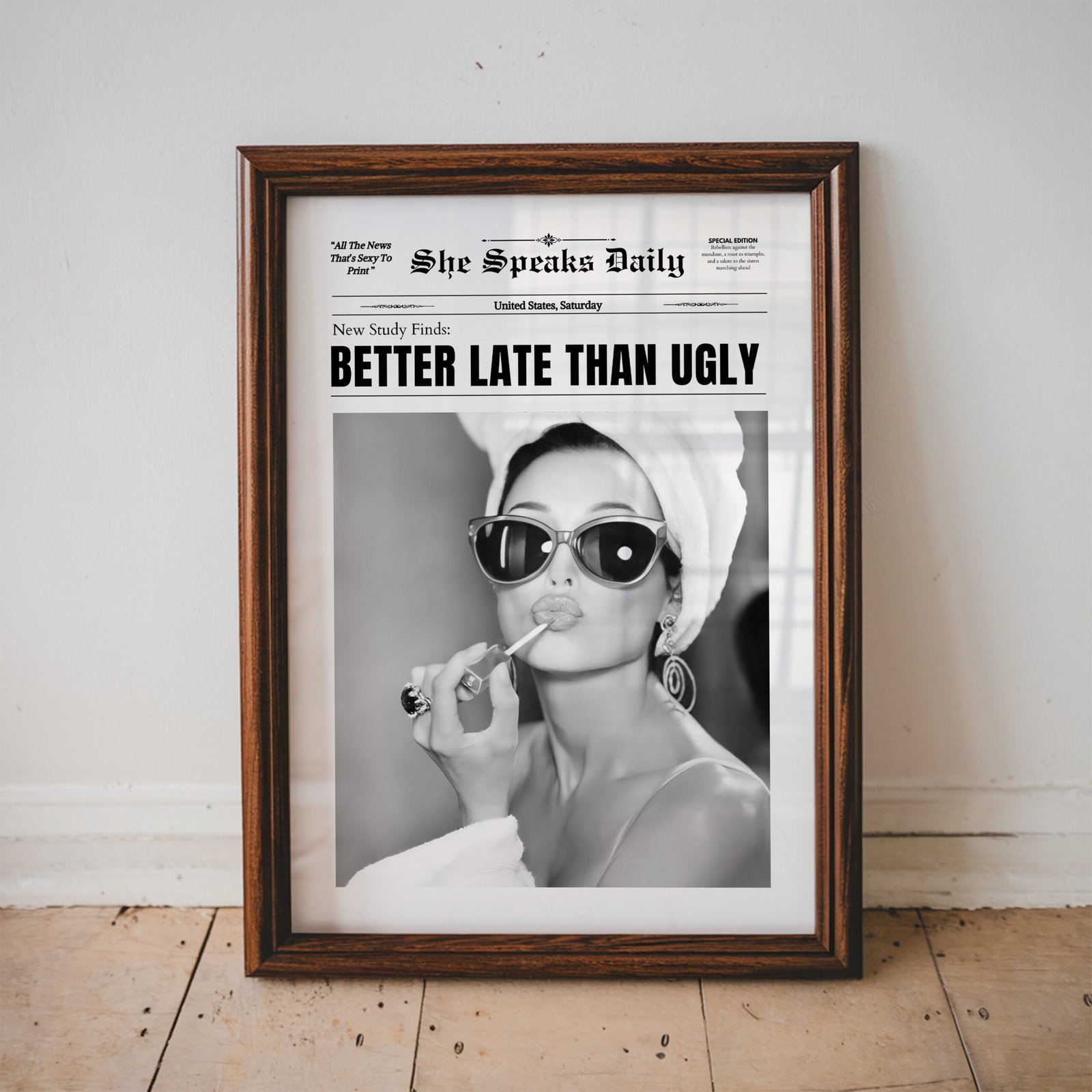Better Late Than Ugly Audrey Hepburn Newspaper Print