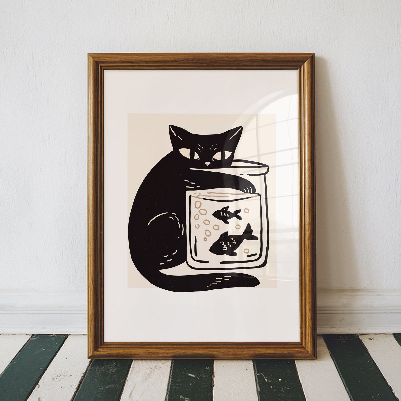 Curious Cat with Fish Bowl