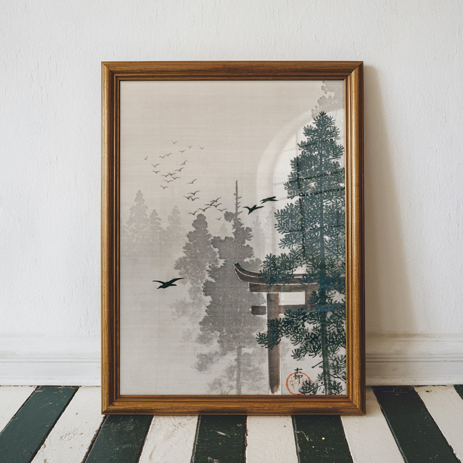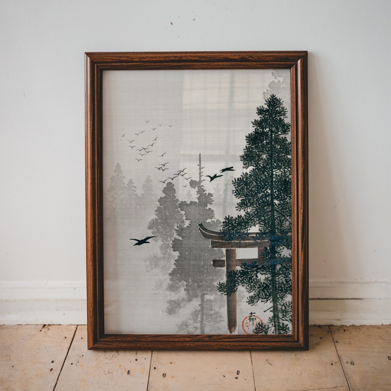 Flock of Birds and a Torii Gate by Ohara Koson