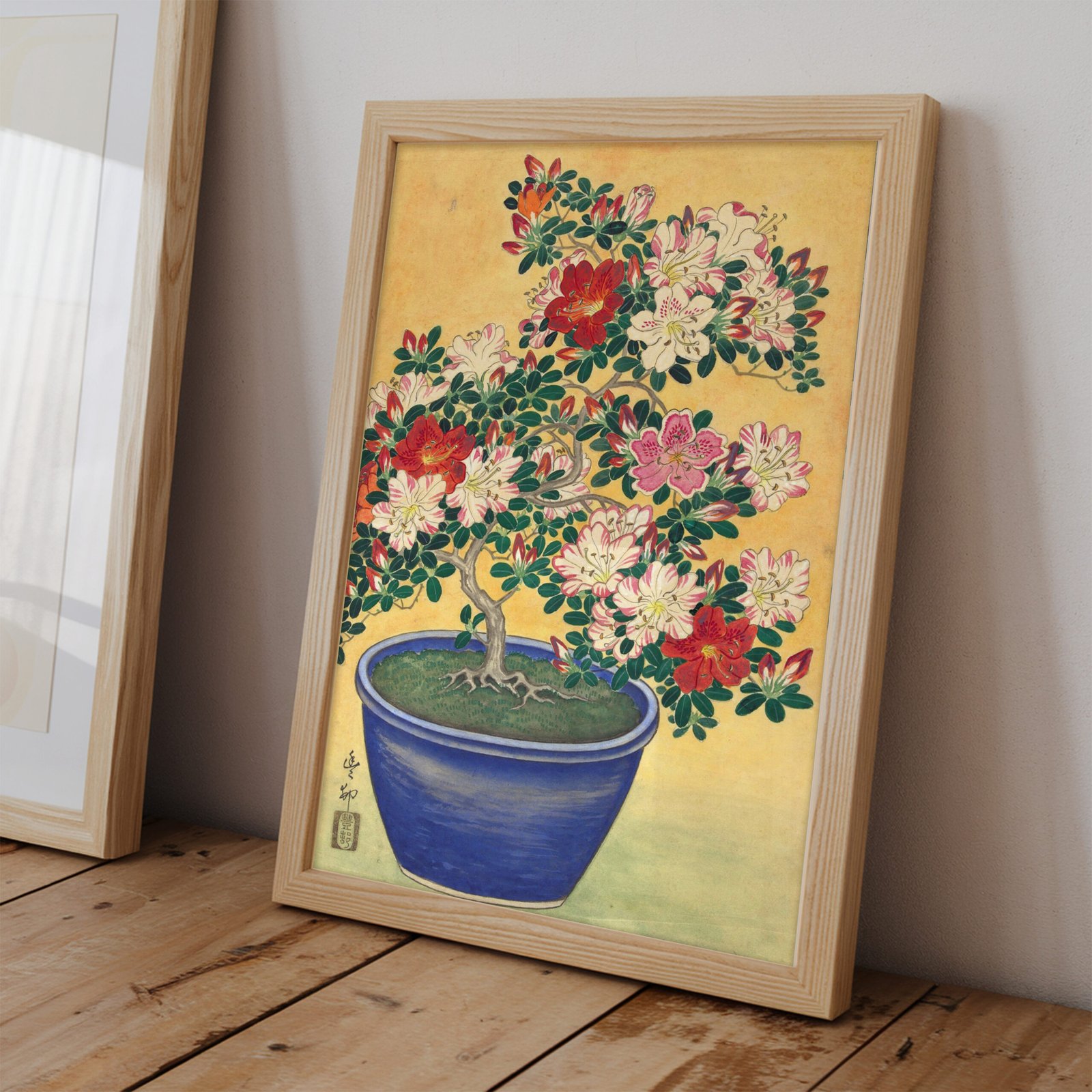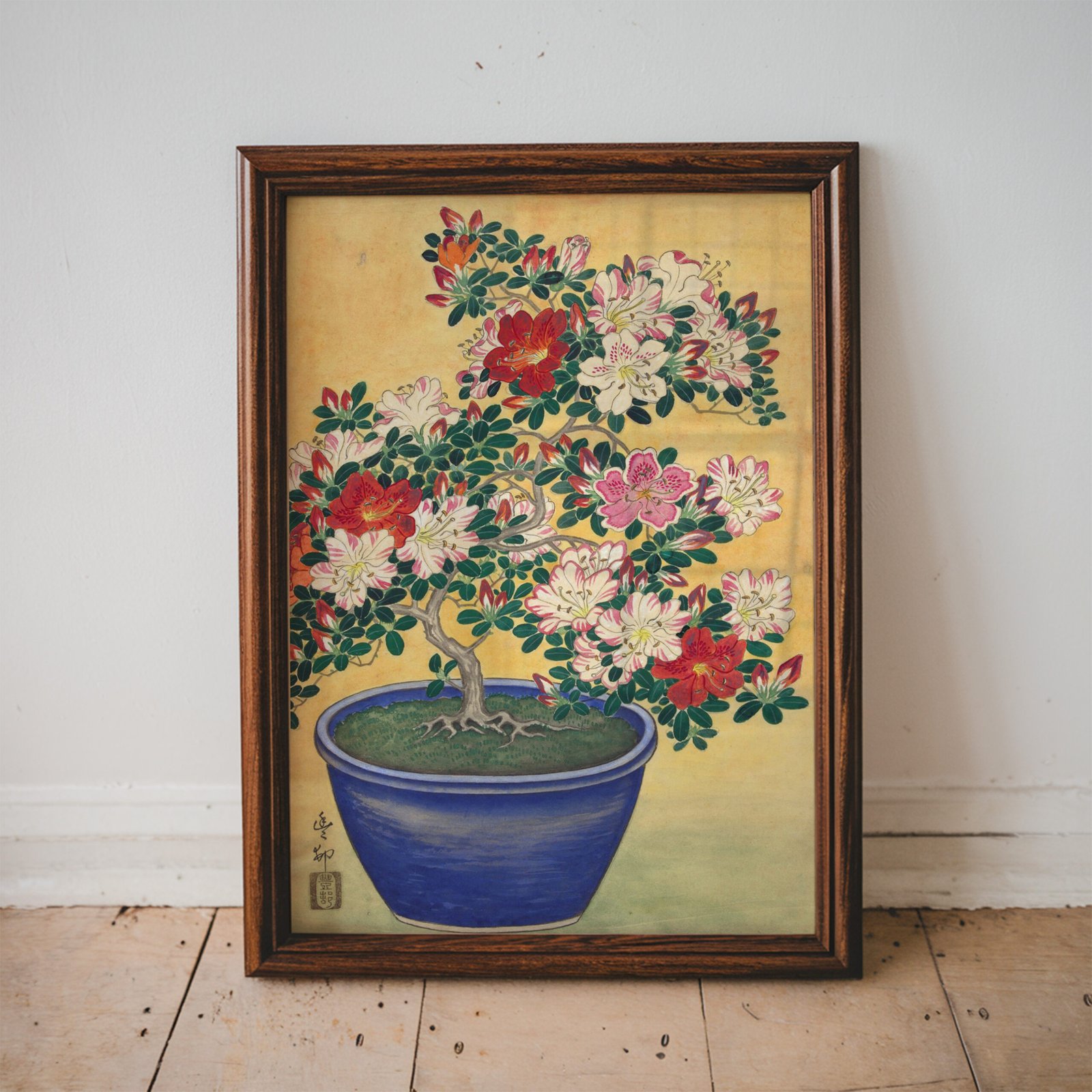 Flowering Azalea in Blue Pot by Ohara Koson