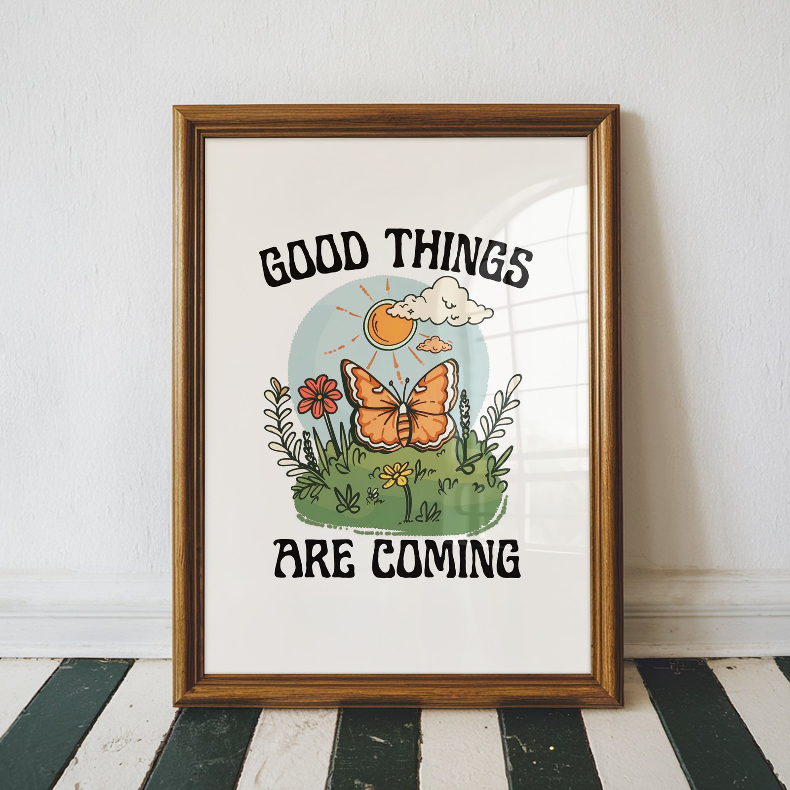 Good Things Are Coming Retro Butterfly Print
