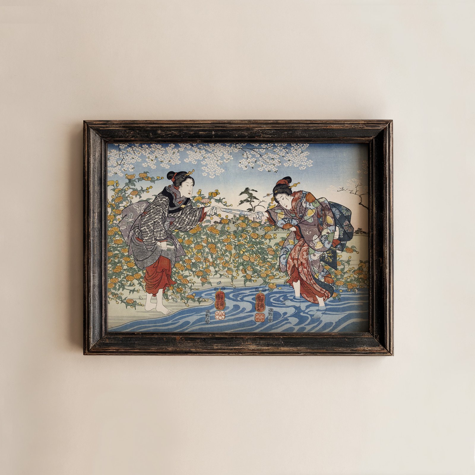 Japanese Girls by the Ide Tama River by Utagawa Kuniyoshi