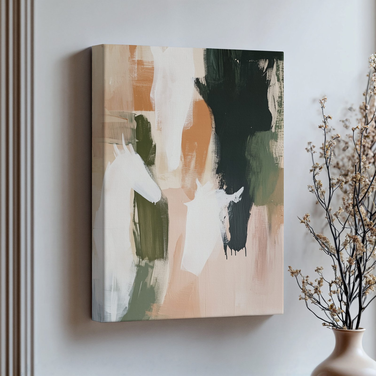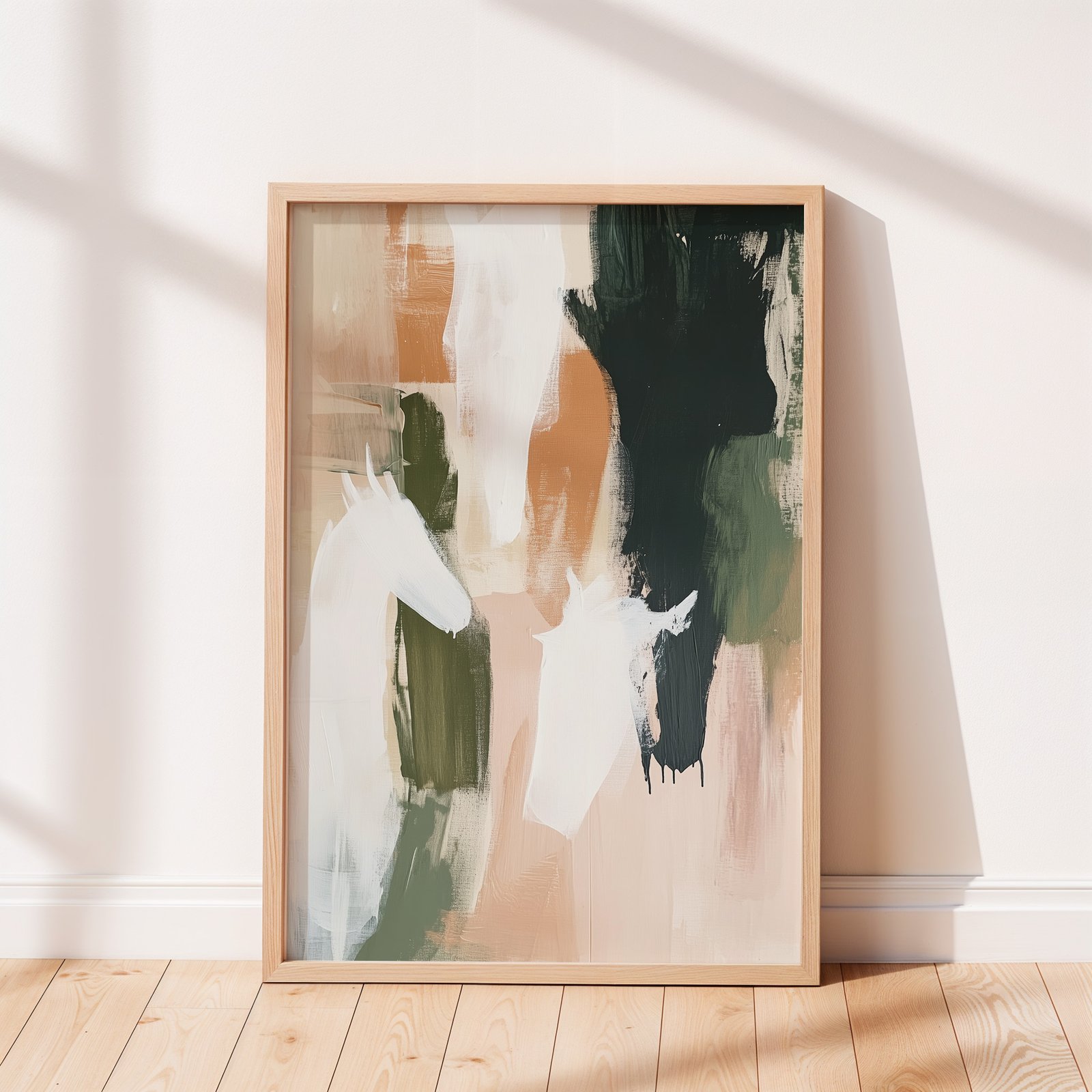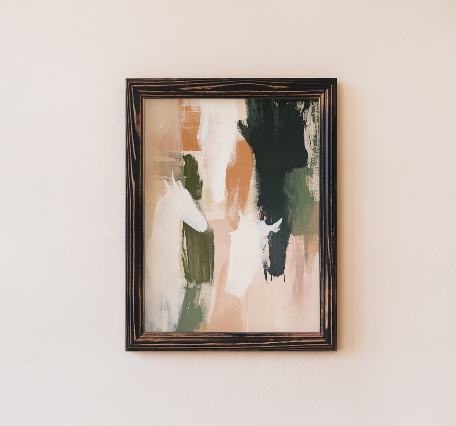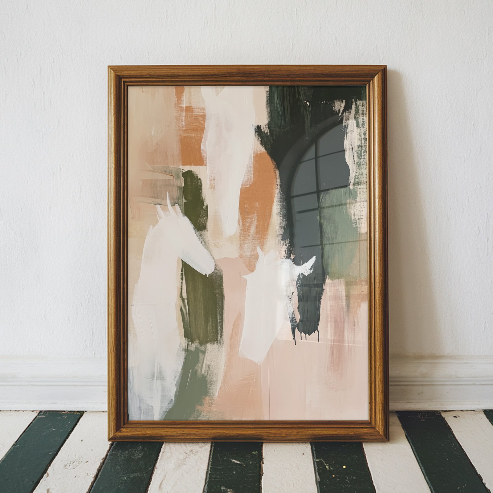Add a bold, modern touch to your space with this abstract horse wall art featuring painterly brushstrokes in warm earth tones, deep forest greens, and creamy neutrals. Subtle horse silhouettes emerge from expressive layers of color, creating a dynamic, textured piece that balances movement and calm. Whether printed on canvas or framed as contemporary wall art, this piece is perfect for equestrian lovers, rustic-modern interiors, or anyone drawn to abstract animal forms. A striking choice for living rooms, studios, or entryways.