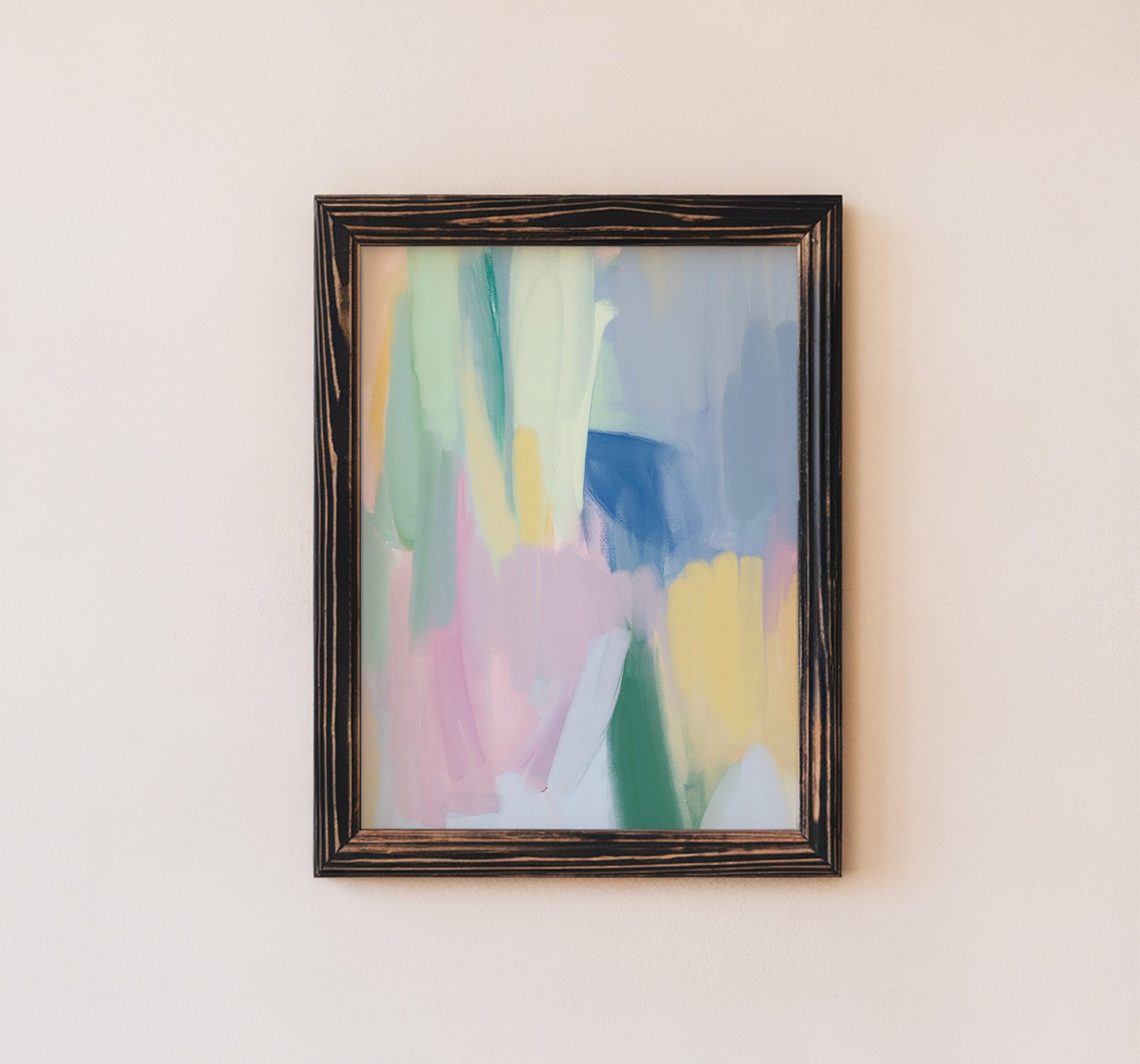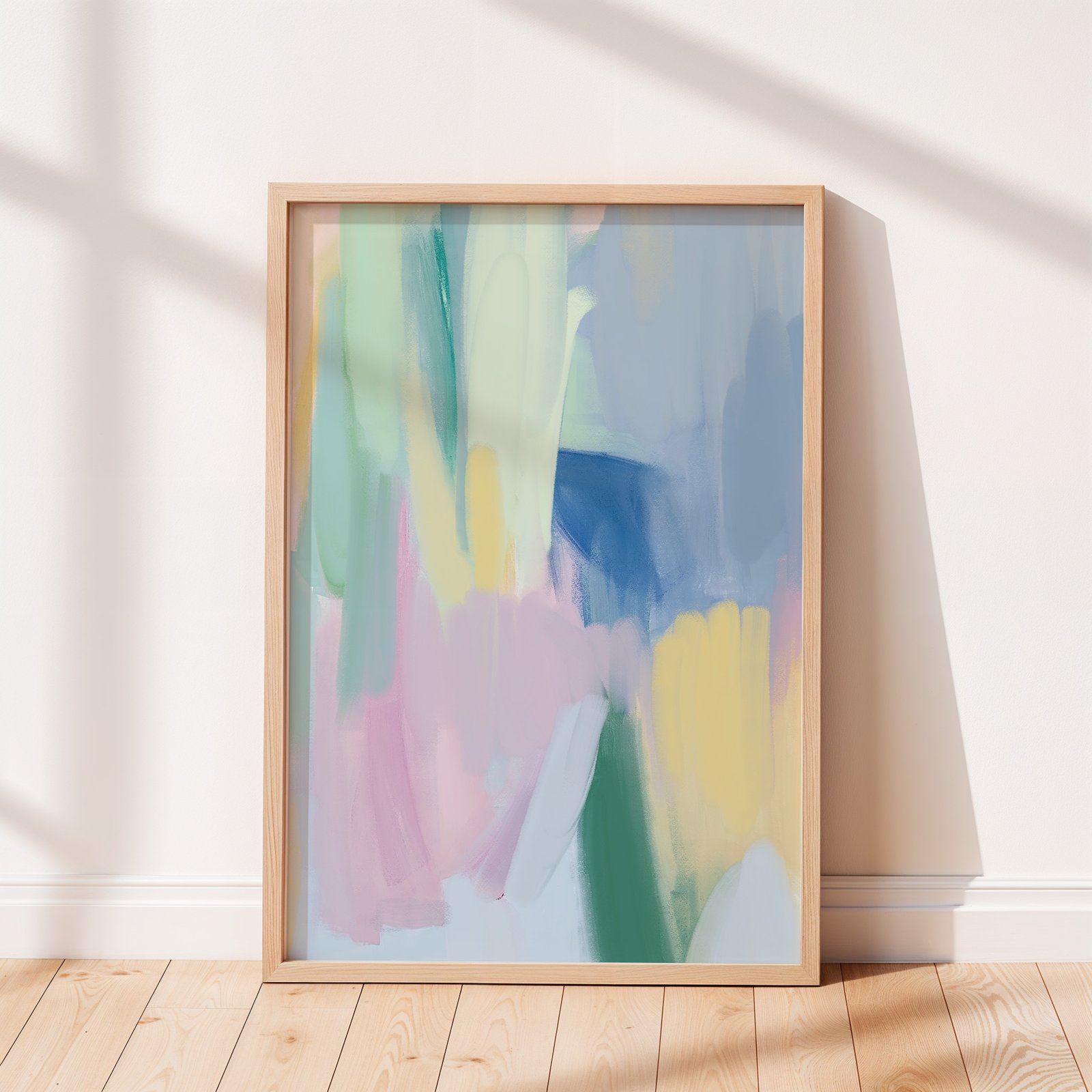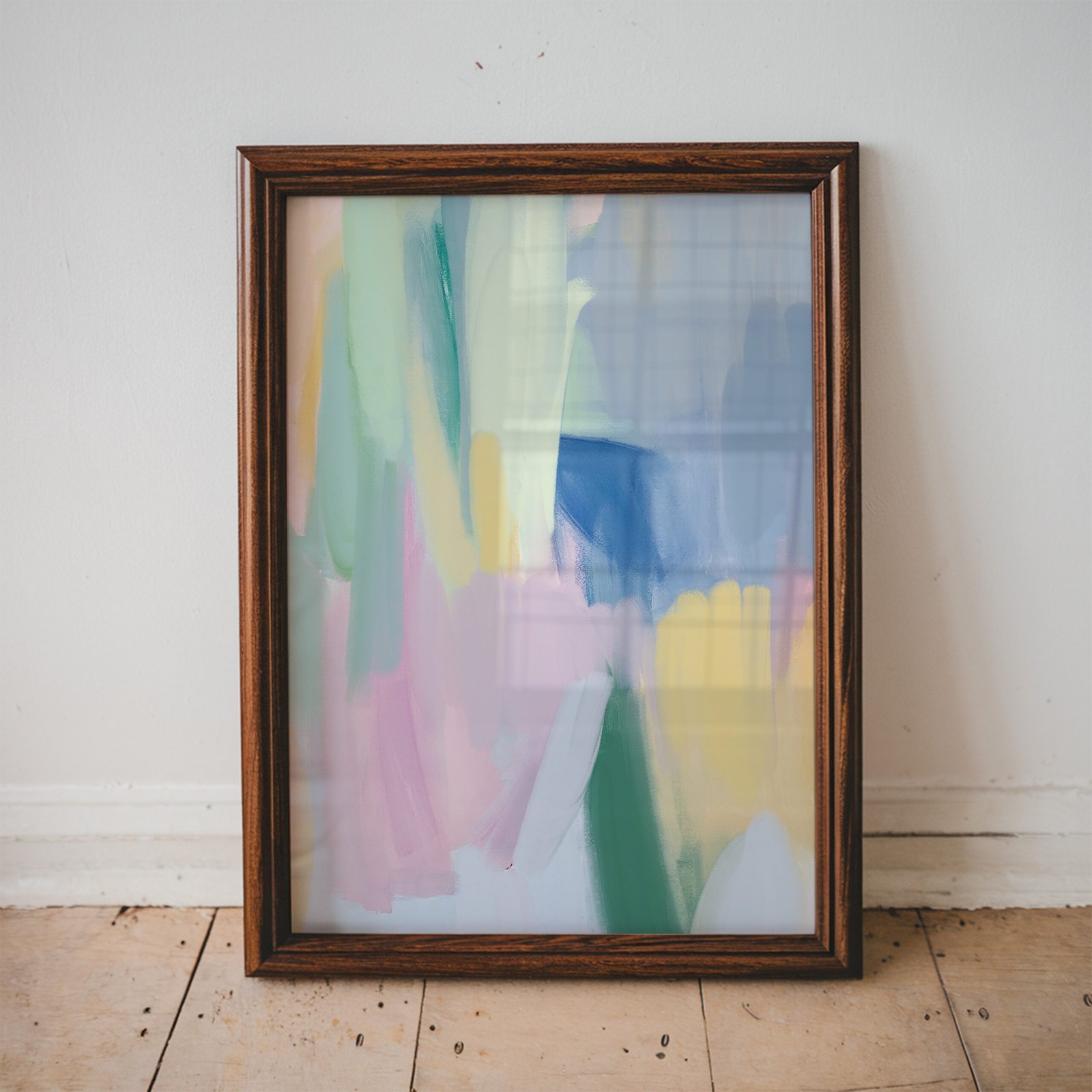 This abstract piece, titled Pastel Dream, showcases a soft blend of pastel colors in sweeping brushstrokes. The harmonious mix of blues, greens, pinks, and yellows creates a serene, almost ethereal atmosphere, perfect for any contemporary space. Ideal for those who appreciate minimalist abstract art, this print adds a calm, soothing energy to living rooms, bedrooms, or offices. Its gentle hues and fluid design evoke a sense of tranquility, making it the perfect addition to create a peaceful, inspiring environment in your home.